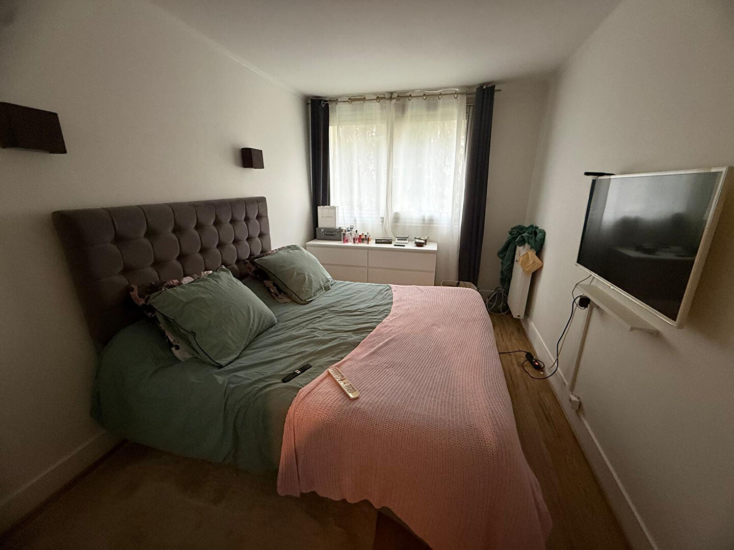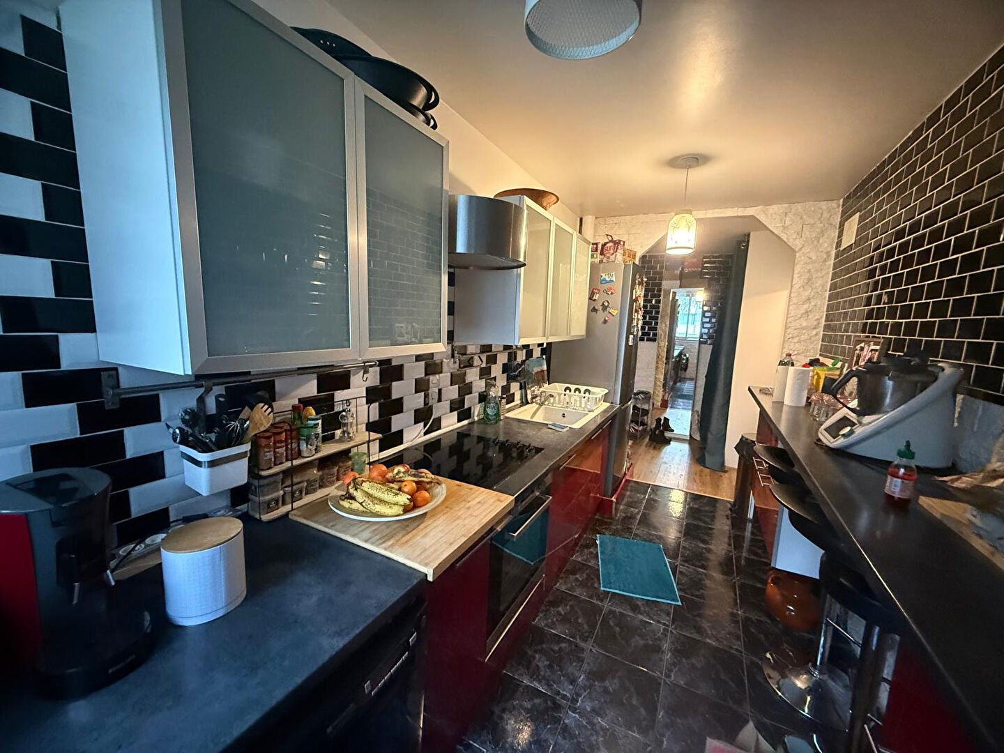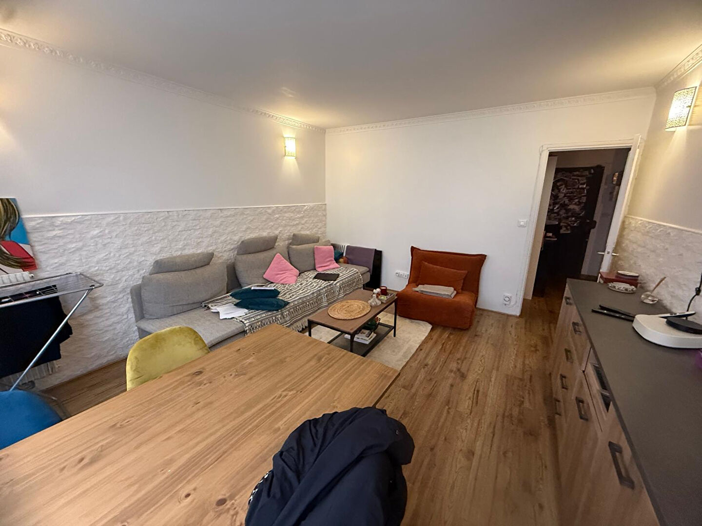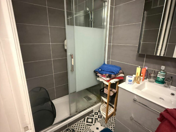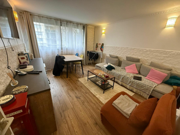 Appartement 2 pièces bien agencé, comprenant une entrée avec dégagement, une cuisine avec coin repas ouverte par baie sur le séjour, une chambre, une salle de bains, des WC et un espace de rangement.