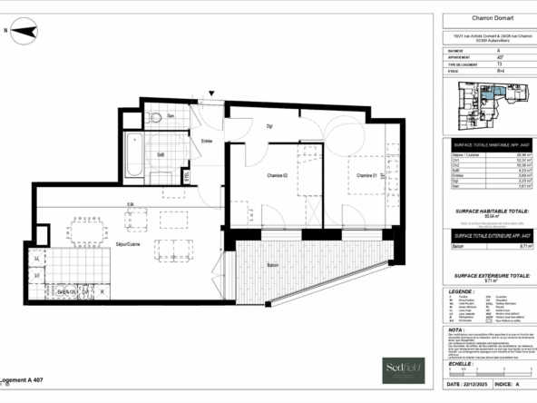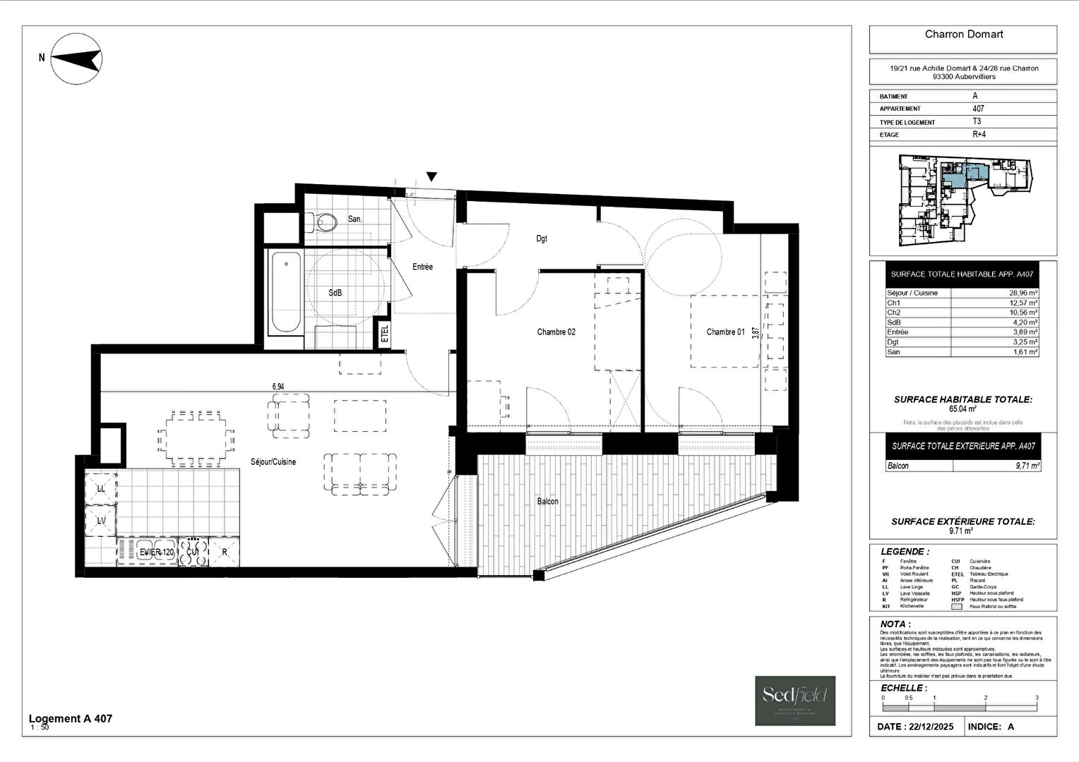 Dans une résidence neuve de standing située à seulement 300 mètres du métro 12, découvrez ce bel appartement 3 pièces de 65,04 m². Il se compose d’un spacieux séjour/cuisine de 28,96 m², de deux chambres de 12,57 m² et 10,56 m², d’une salle de bains, de dégagements optimisant la circulation, ainsi que d’un balcon de 9,71 m² offrant un extérieur appréciable au quotidien.