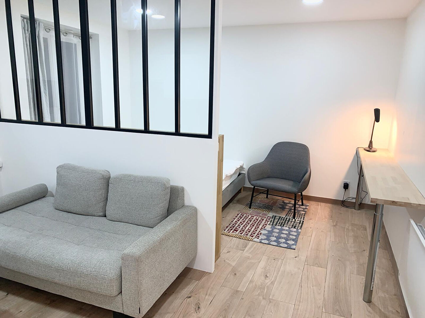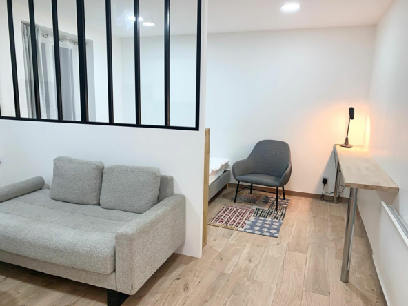 Immotop vous propose un appartement de type studio d’une surface de 26M² parfaitement meublé. Cuisine équipée séparée de la piece principale par une verrière, une salle d’eau avec WC. Cet appartement est loué meublé et est disponible immédiatement. TRANSMETTEZ VOS DOSSIERS !